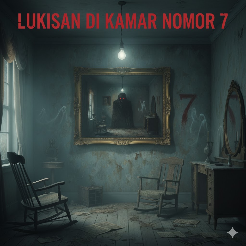 Lukisan di Kamar Nomor 7 – Reno adalah seorang fotografer yang sering bepergian. Suatu malam, ia menginap di sebuah penginapan tua di daerah pegunungan. Penginapan itu tampak sepi, hanya ada resepsionis tua yang berbicara dengan suara serak.